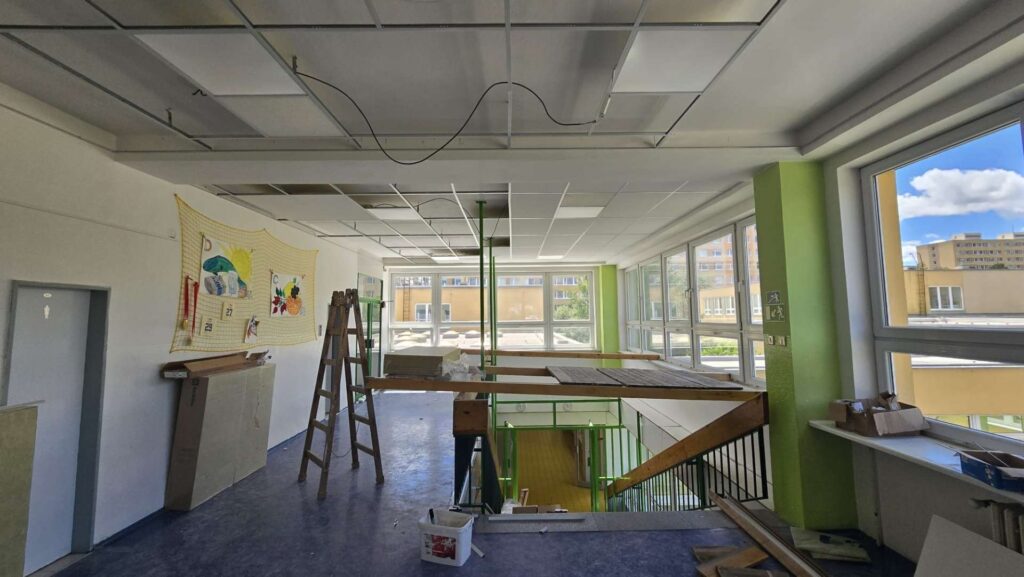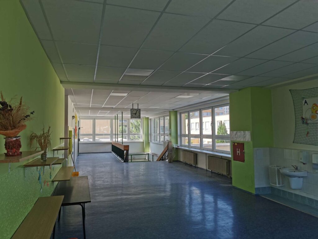 Základní škola Květnového vítězství na Praze 4 čelila problému s akustikou v chodbě před jídelnou. Při výdeji obědů se pravidelně tvořily fronty dětí, které čekaly na své jídlo. Čekající děti však málokdy vydržely být v klidu, což vedelo k vytváření hlučného prostředí.