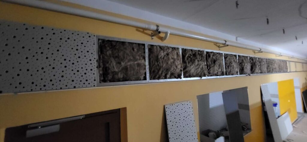 Koncem roku 2023 kontaktoval naši společnost pan ředitel Základní školy a Mateřské školy Lužná s problémem přílišného odrážení zvuku ve školní jídelně. Vedení školy hledalo efektivní řešení pro zlepšení akustického komfortu v tomto důležitém prostoru.
