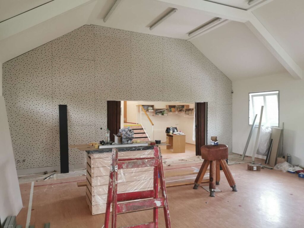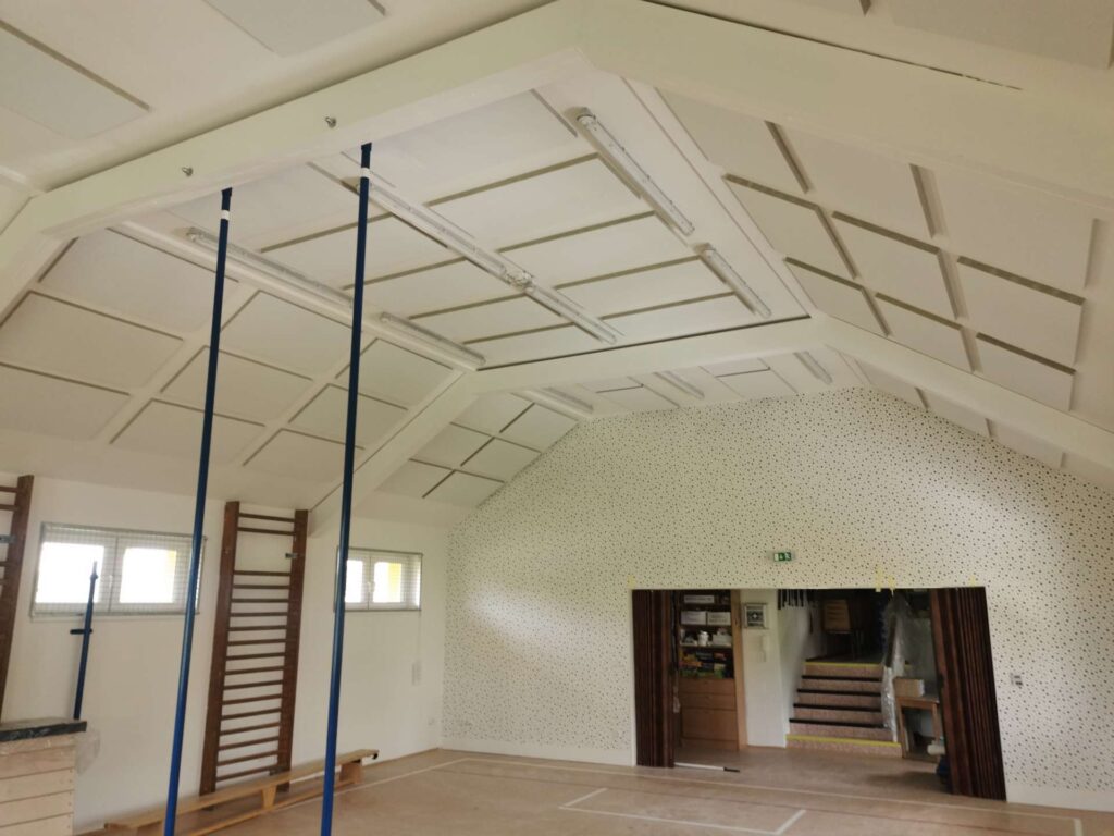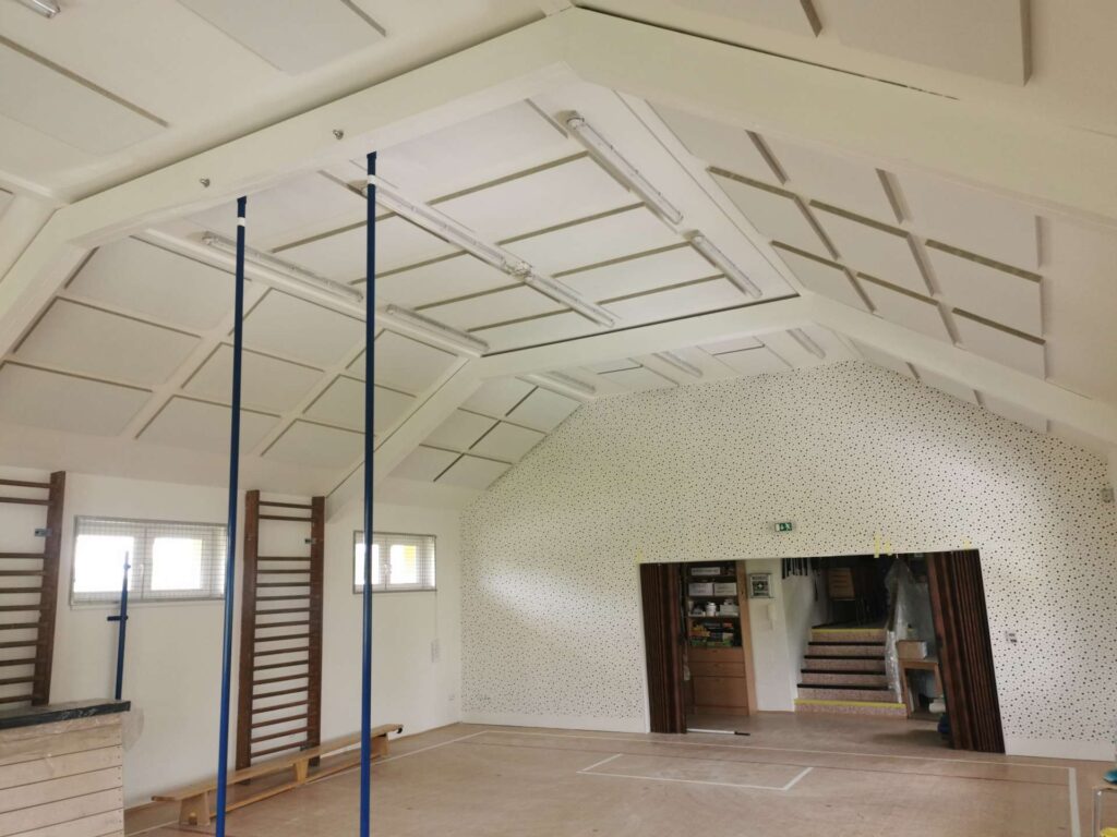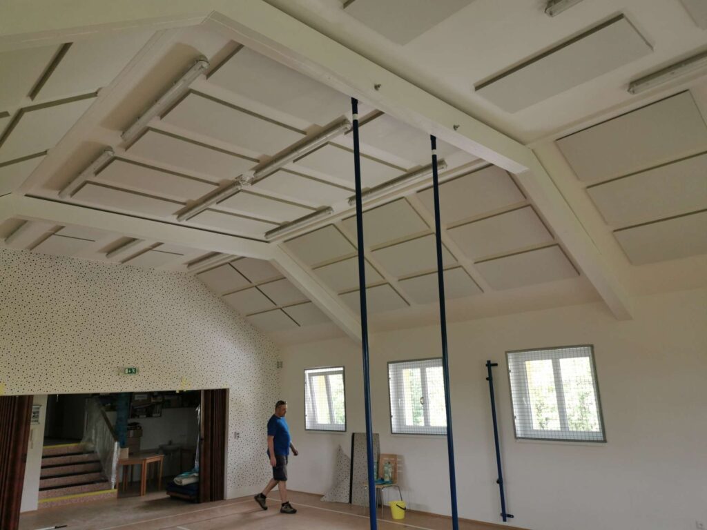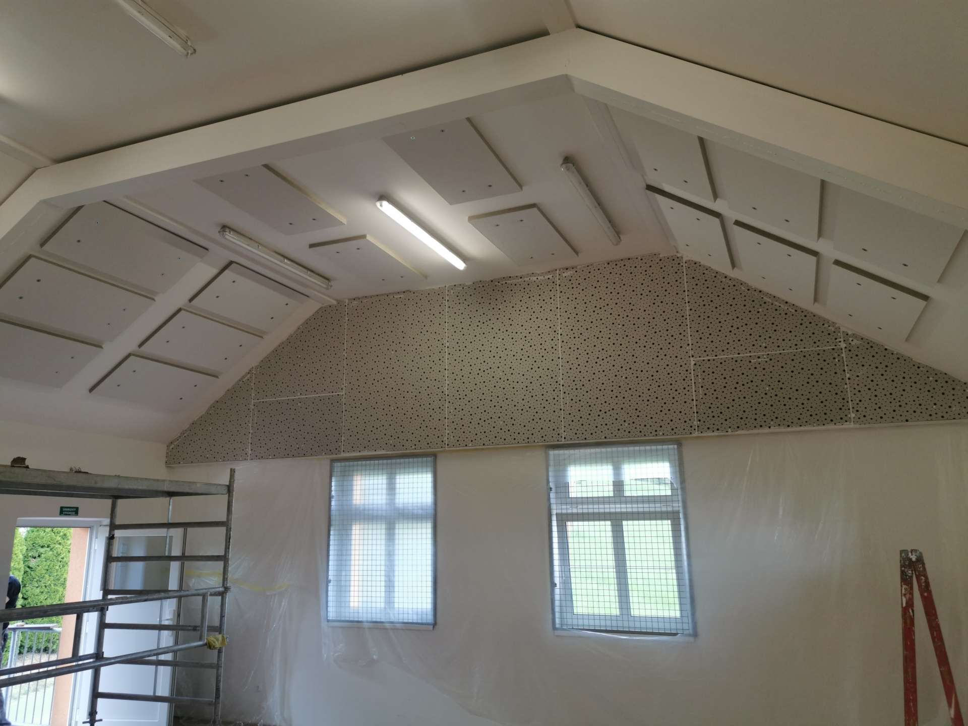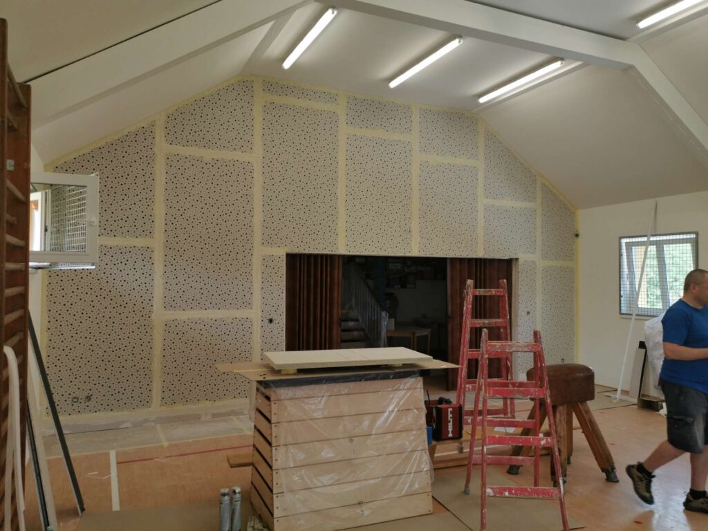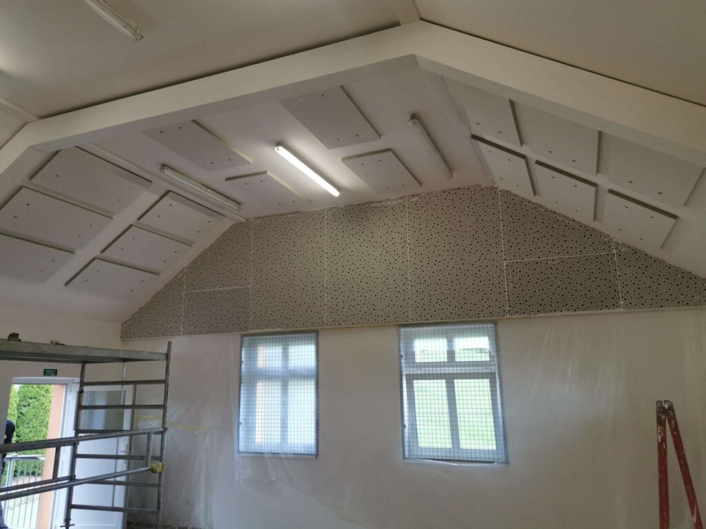 Tělocvična v obci Mírová pod Kozákovem představovala atypický akustický projekt s nestandardními prostorovými omezeními. Realizace z roku 2021 se musela vypořádat se specifickou architekturou budovy a omezenou výškou prostoru.
