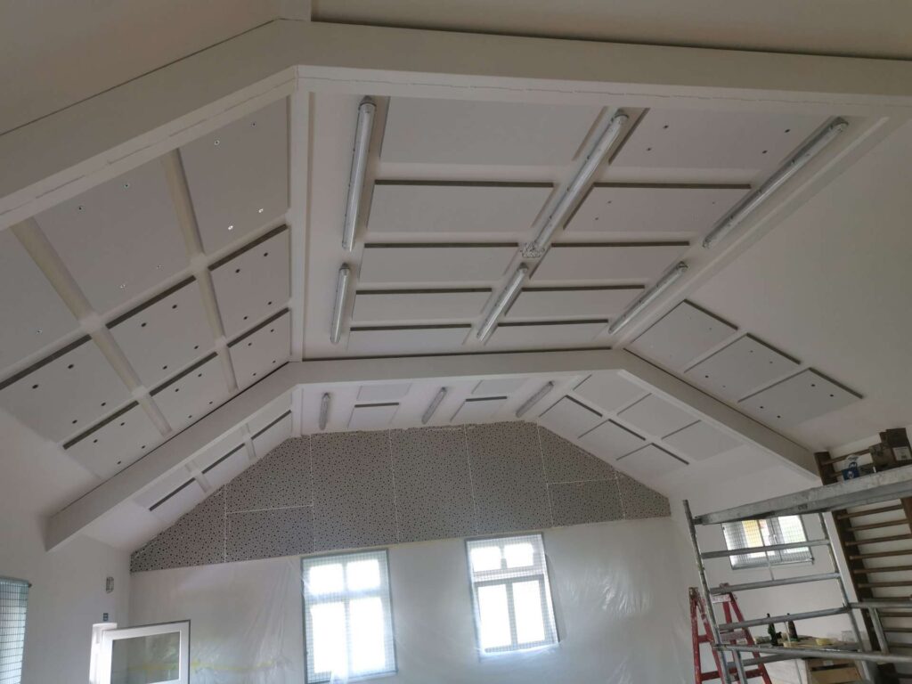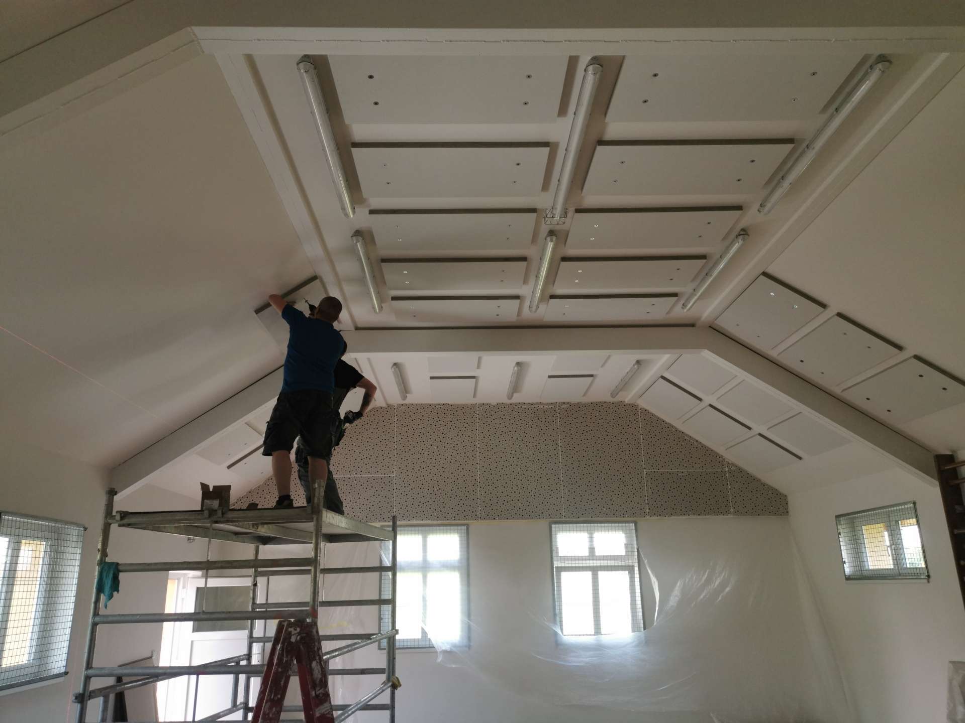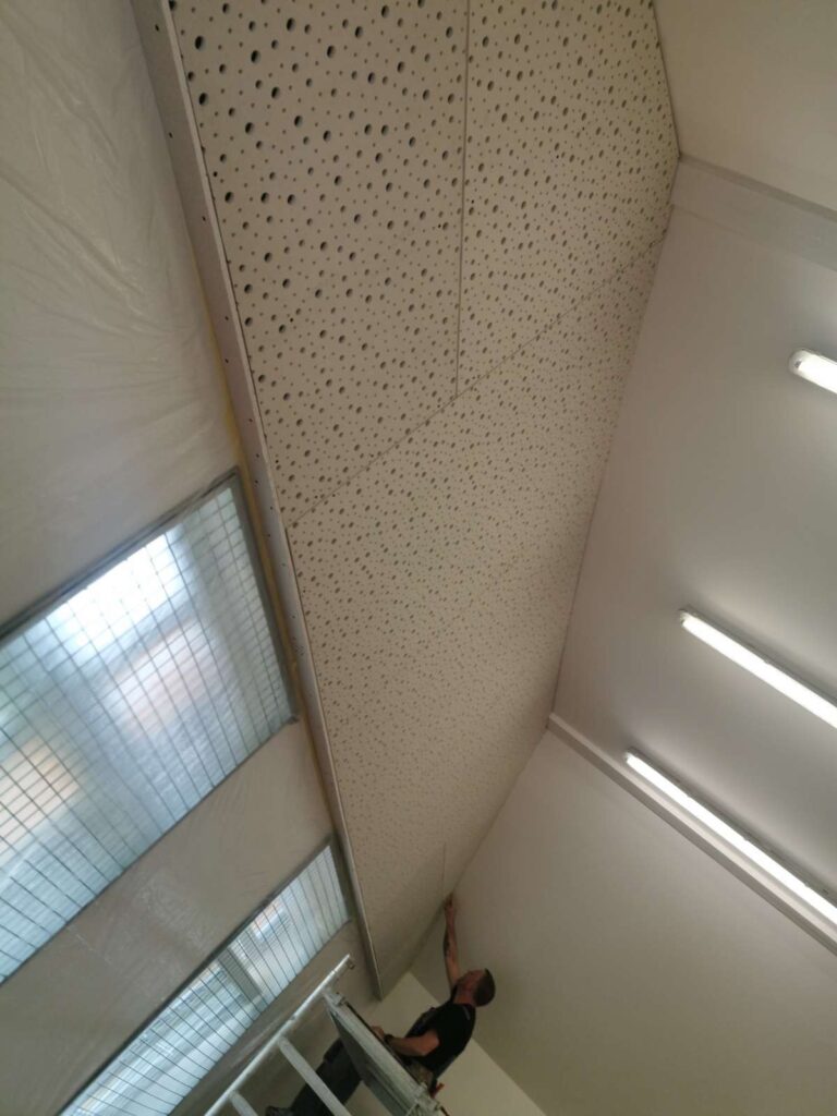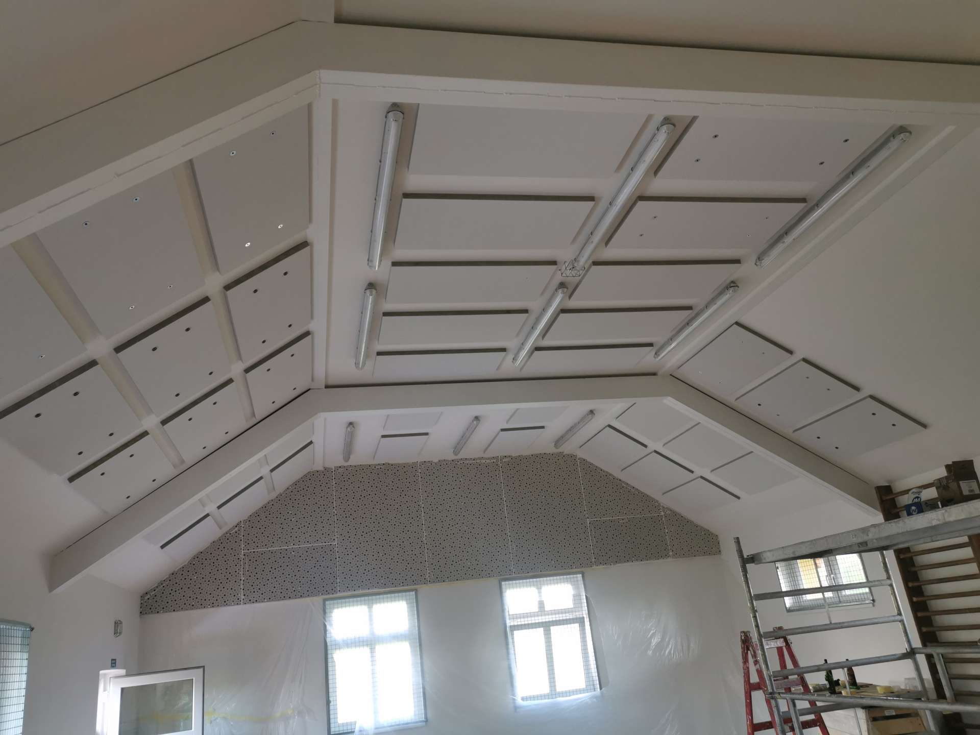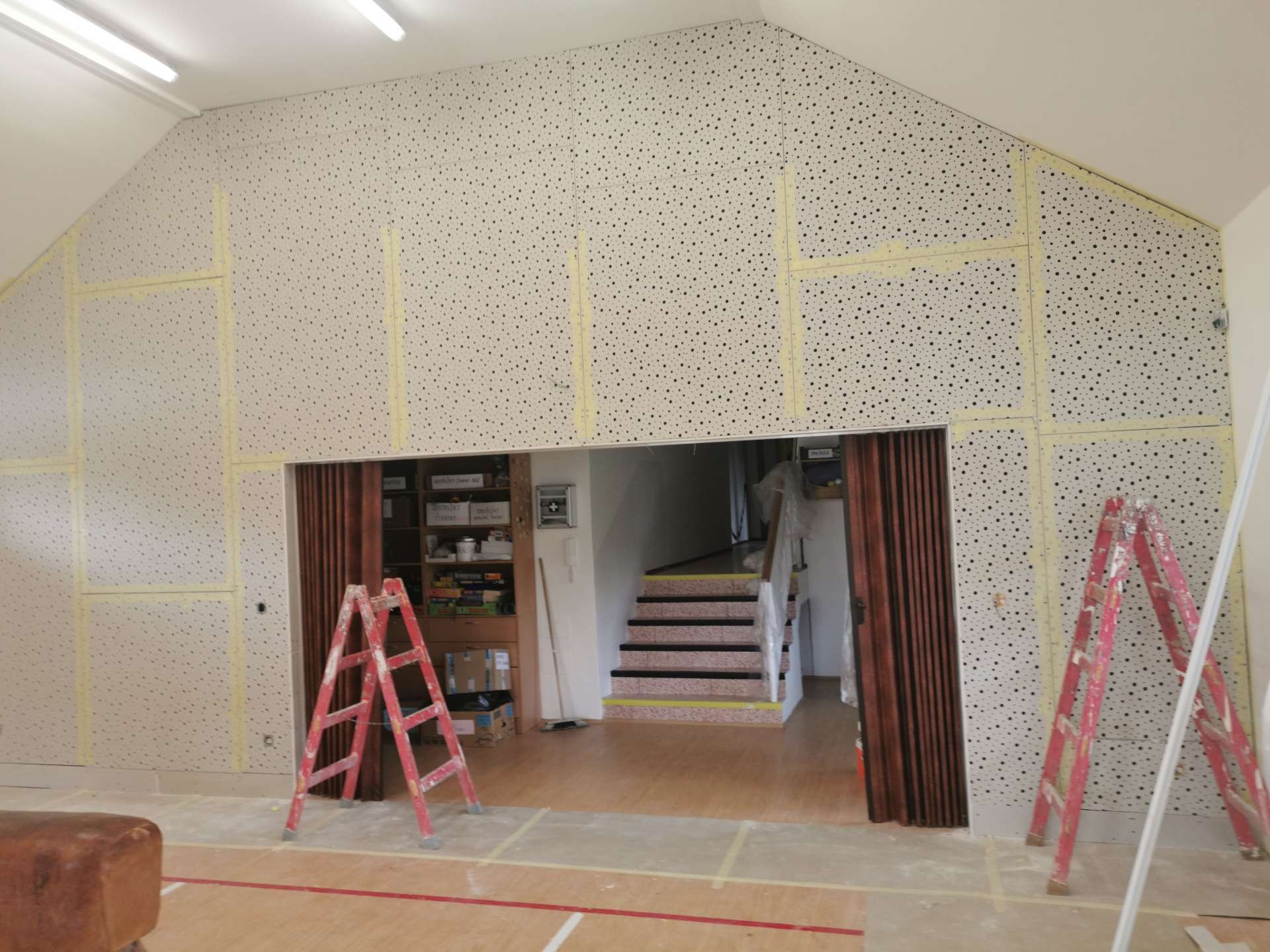Tělocvična v obci Mírová pod Kozákovem představovala atypický akustický projekt s nestandardními prostorovými omezeními. Realizace z roku 2021 se musela vypořádat se specifickou architekturou budovy a omezenou výškou prostoru.