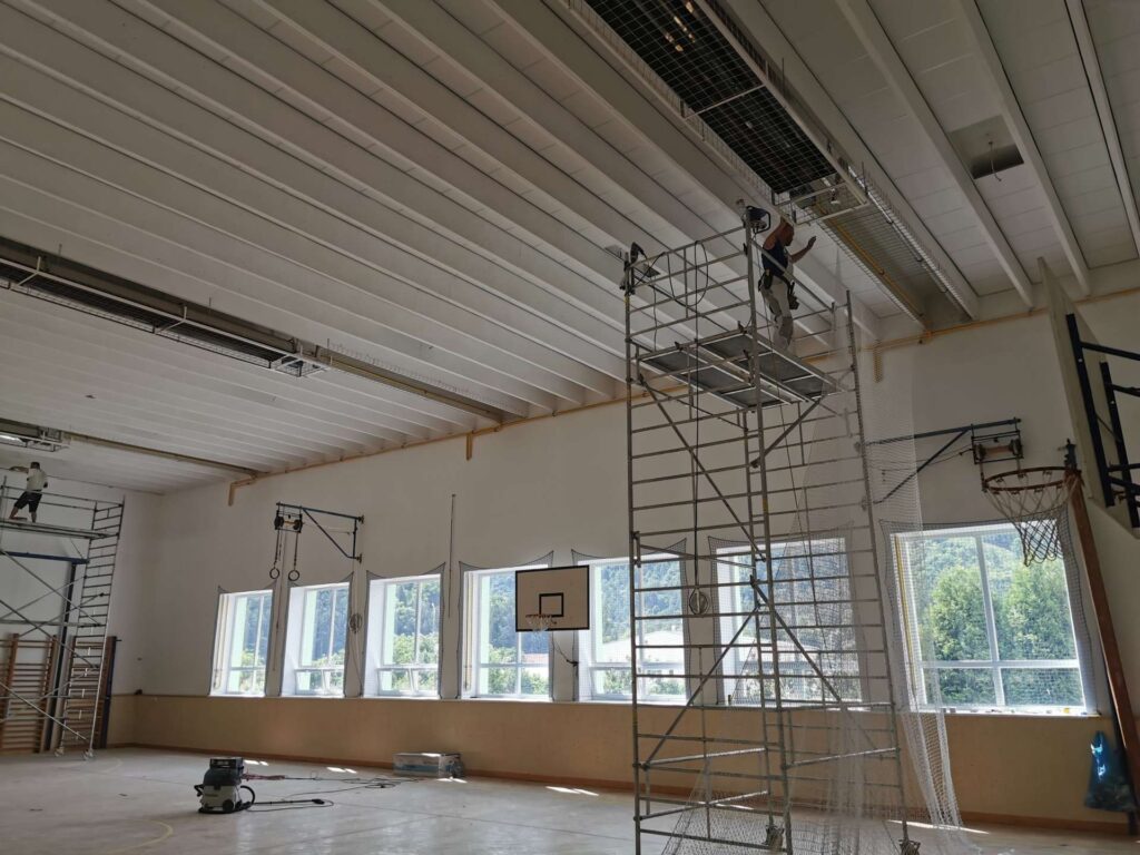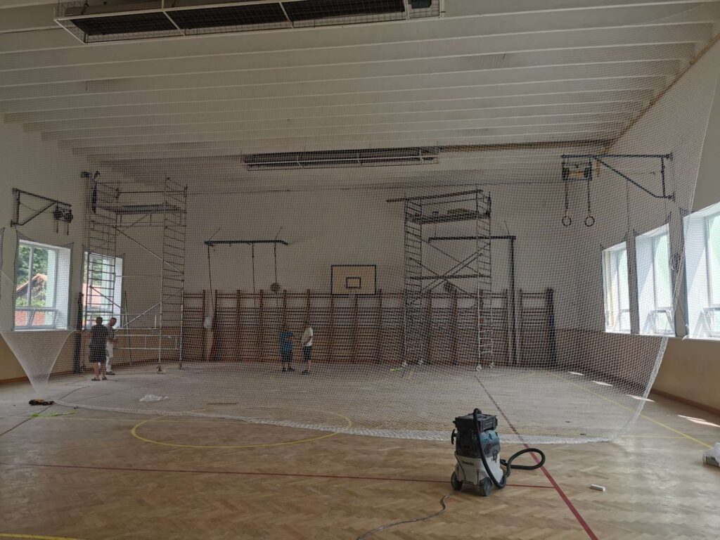 • Náročná logistika: Koordinace prací v tělocvičně