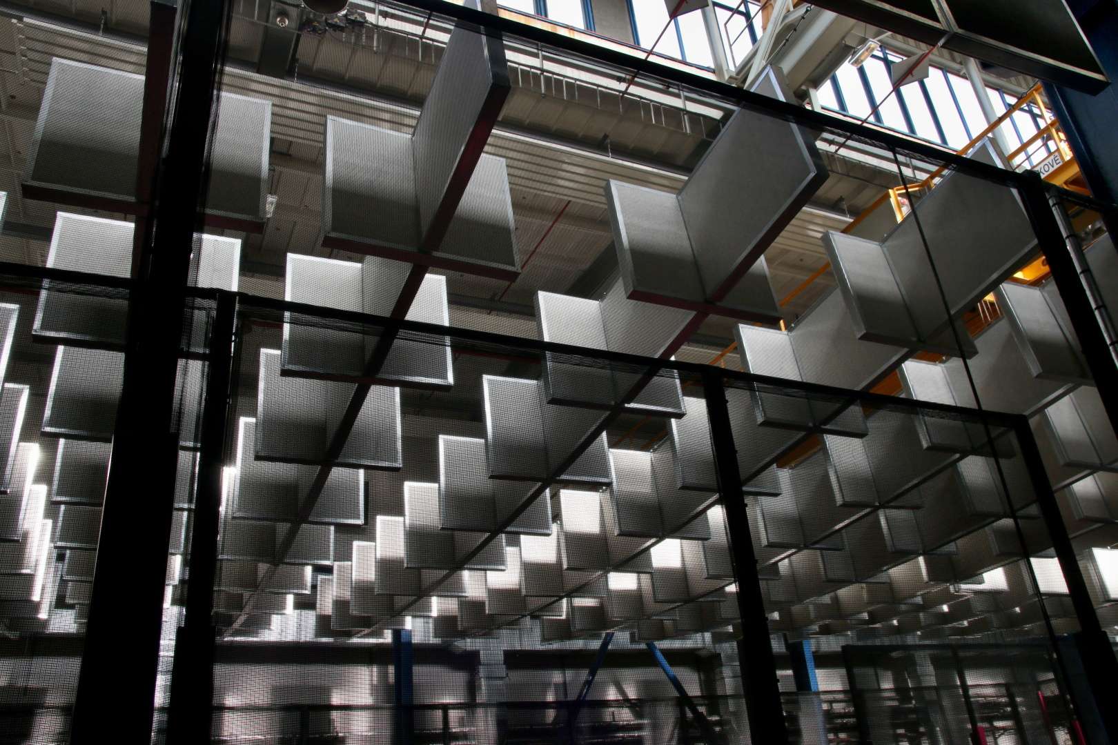 • Akustické absorbéry: Instalace bezmála 1 000 kusů panelů