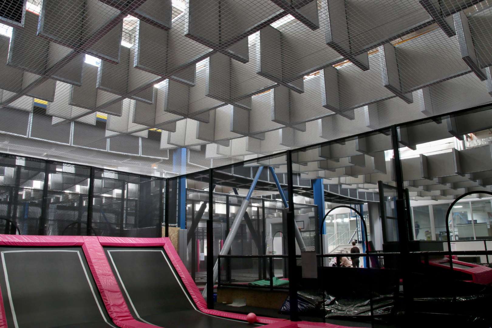 Stálý zákazník, kterému jsme již akusticky upravovali dvě provozovny (Jump park Na Jarově a Lazer fun na Českomoravské), nás kontaktoval s mimořádně náročným projektem. Plánoval otevřít velký projekt Jump Areny Praha v komerčním objektu na Zličíně, ale po první schůzce bylo jasné, že čeká nás jeden z nejtěžších projektů v historii firmy.