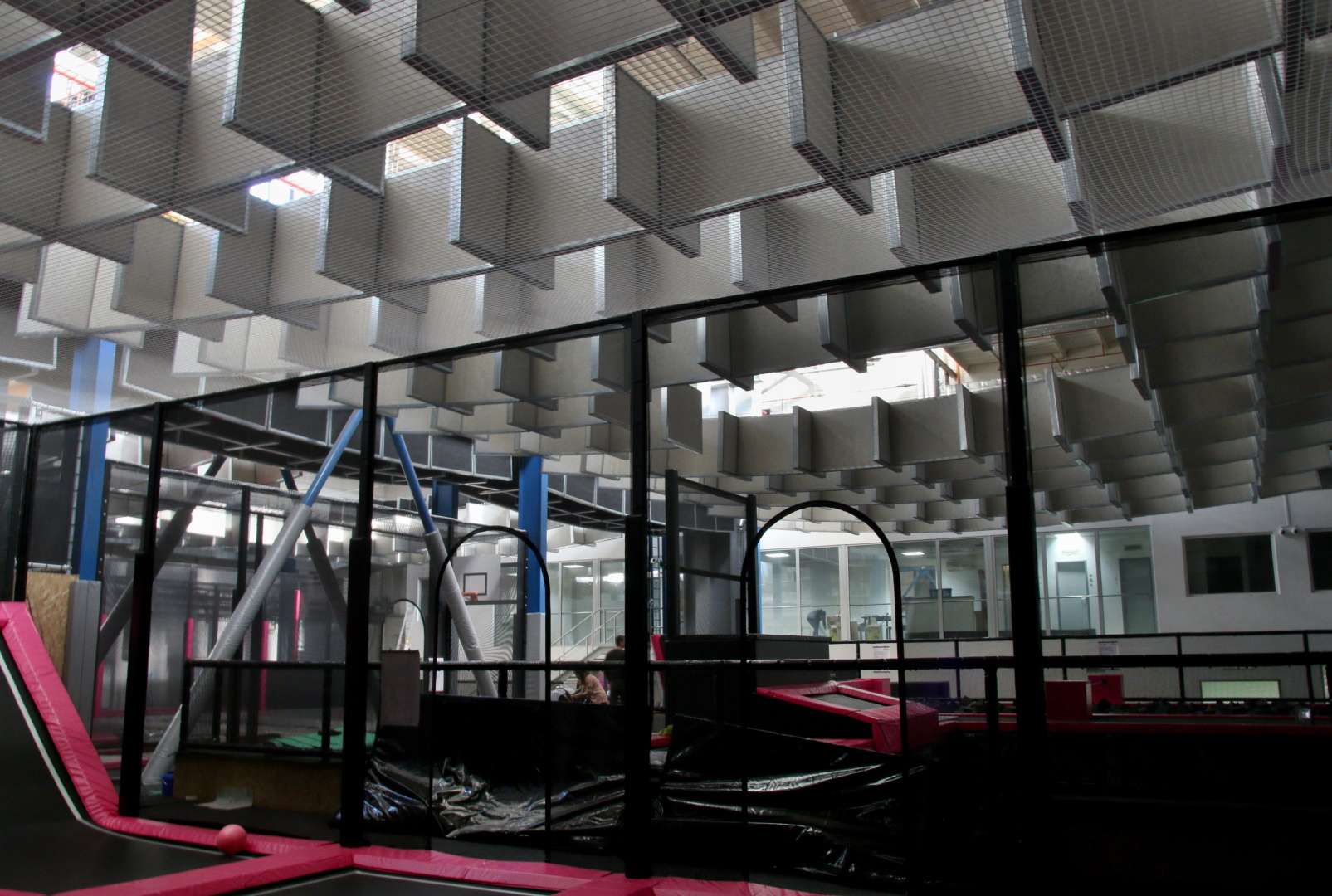 Stálý zákazník, kterému jsme již akusticky upravovali dvě provozovny (Jump park Na Jarově a Lazer fun na Českomoravské), nás kontaktoval s mimořádně náročným projektem. Plánoval otevřít velký projekt Jump Areny Praha v komerčním objektu na Zličíně, ale po první schůzce bylo jasné, že čeká nás jeden z nejtěžších projektů v historii firmy.