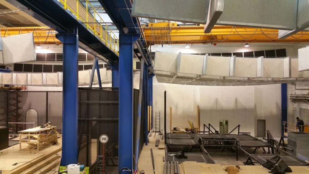 Bylo navrženo revolučné řešení kombinující dvě předsazené neprůzvučné stěny se sedmi vrstvami materiálů a inovativní systém akustických absorbérů pro úpravu doby dozvuku.
