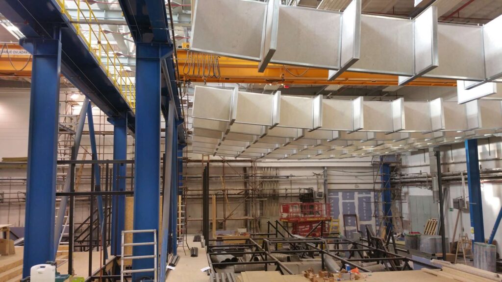• Akustické absorbéry: Instalace bezmála 1 000 kusů panelů